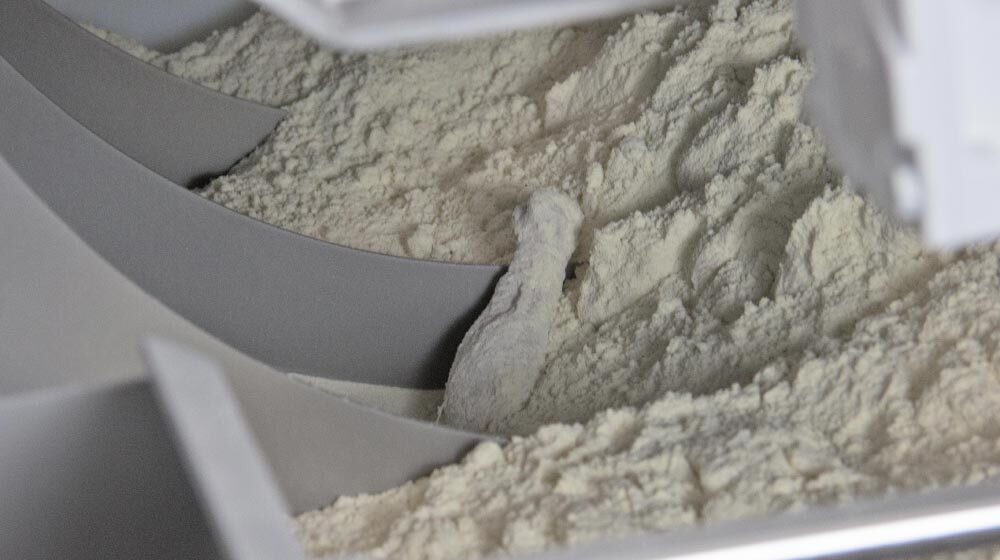 Notoriously-difficult to handle in a machine application, flour coatings do not flow freely and tend to pack if not moved mechanically, requiring a specially designed applicator to ensure proper recirculation and application that will replicate what is done by hand at home.