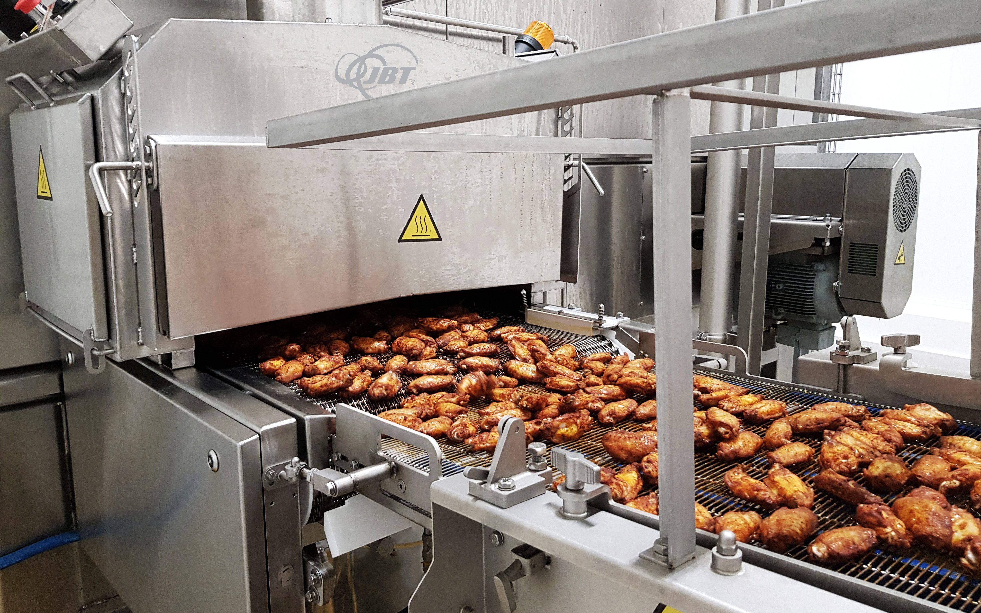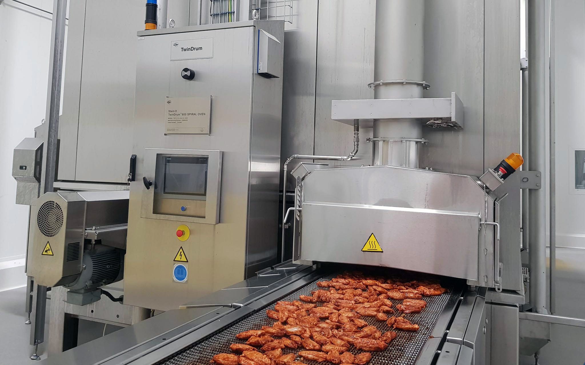 JBT had the food processing machines, experience, and innovation that measured up to the requirements and put together a dedicated team of experts that worked in close collaboration with Norsk Kylling. As an innovative part of the project, JBT redesigned their Stein® TwinDrum Spiral Oven so that it could use electric heat from renewable sources.