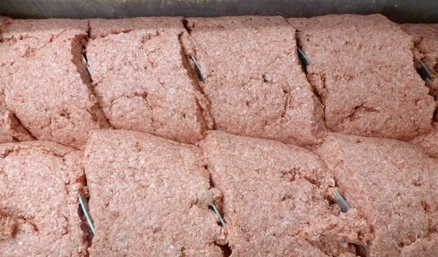 For poultry burgers, the meat is first analyzed by a scanner, which measures and adjusts the fat content to the desired level, before it is loaded into the Grinder AMG. A twin-screw system and cutting sets with optional separation mechanisms are adaptable to individual requirements and can handle different types of raw materials, as well as frozen blocks down to a temperature of -18 °C.