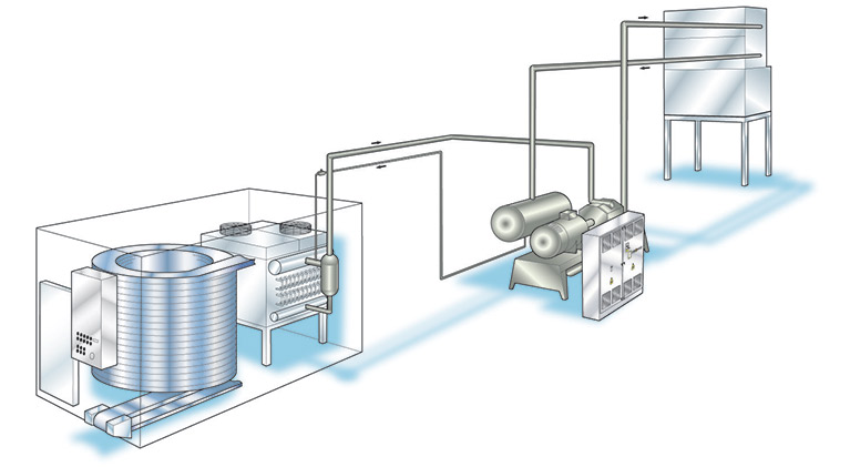 - Compact design, with smaller pipe dimensions and no need for a large pressure vessel, resulting in lower refrigerant costs